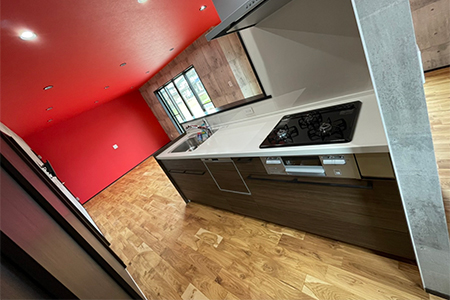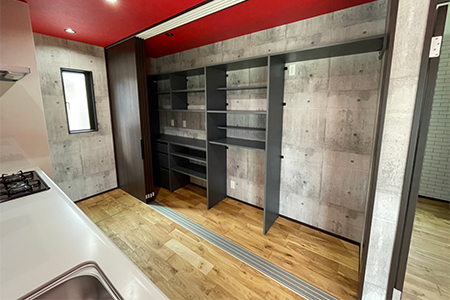 キッチン部分のカップボードには引戸付きで、収納力抜群!