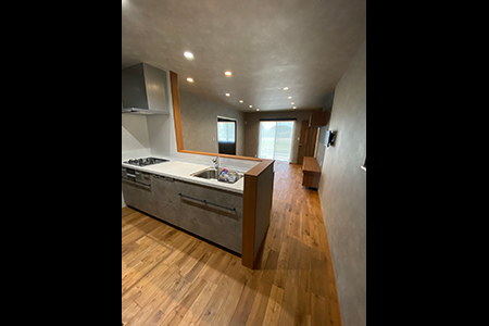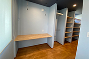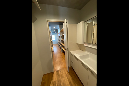 無垢材を使用した床は、素足での触れ心地がよく、お家の中が温かい雰囲気に包まれます。お部屋によって異なるクロスは、家族ひとりひとりのこだわりが詰まった空間に。洗濯場、ランドリールーム、ウッドデッキが一直線で、スムーズな家事動線の間取りもポイントです!