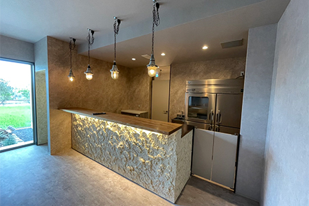 シックなグレー色の壁で統一した室内は、心が落ち着く、大人の秘密基地。