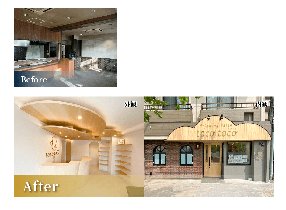 店舗の内外を問わず、ちょっとした工事から大がかりな全面改修・増改築まで幅広いニーズにご対応いたします。